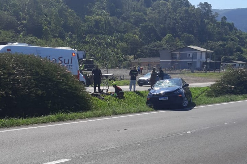 As equipes de socorro chegaram rapidamente ao local para prestar os primeiros atendimentos à vítima e garantir a segurança no trecho.