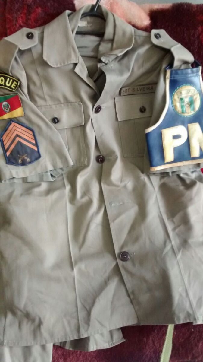 A farda do PM foi encontrada no imóvel. Diversos outros objetos sem procedência foram apreendidos.