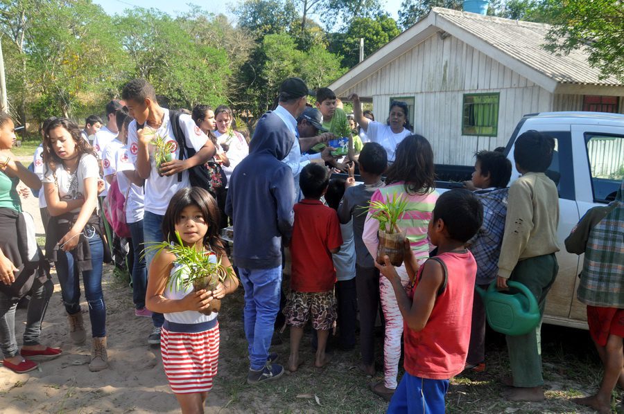 Em clima de festa, 30 estudantes da escola municipal e outras 30 indígenas plantaram as mudas que resultaram da germinação de sementes doadas no ano passado às escolas. Diretores receberam as sementes para plantio nos pátios das escolas. Depois de germinarem, deveriam passar para as caixinhas de leite e após, então, serem transferidas para as terras da Aldeia, área com 97 hectares. O engenheiro agrônomo do município, Gerson Luiz Nardi, a técnica agrícola Fernanda da Rosa Machado e o secretário José Vanderlei Brocca deram explicações sobre o plantio destas sementes nativas às crianças.