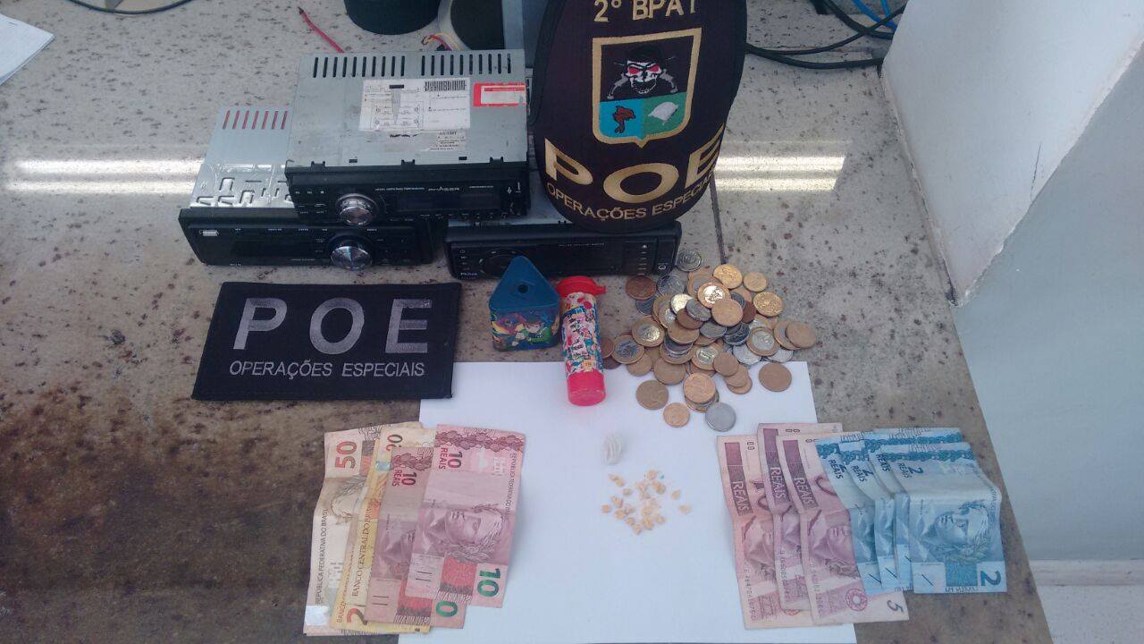 Segundo a BM, a equipe se deslocou até o local após denúncia e flagrou o elemento comercializando o entorpecente em frente a sua residência.