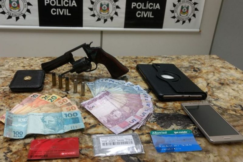 Após diligências, os policiais localizaram o indivíduo na sua residência, onde foram encontrados todos os objetos roubados e a arma utilizada no crime, um revólver calibre .38 com cano reforçado e numeração raspada.