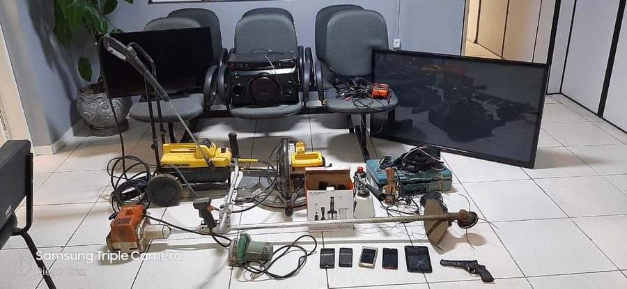 Ao todo, foram recuperados uma roçadeira com motor a gasolina, um lava jato elétrico, uma televisão 32″ polegadas marca Philips, uma televisão 50″ polegadas marca LG, uma serra circular marca de Walt, uma serra makita, uma furadeira de impacto makita, quatro aparelhos de celulares, um simulacro de revólver, uma câmera fotográfica marca samsung, um video game play station2, um multimetro, um conversor de TV digital, e um cartucho deflagrado calibre 16.