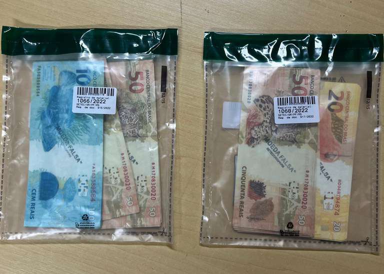 Durante as investigações, foram interceptadas 65 notas falsas, totalizando 3 mil reais em cédulas forjadas.