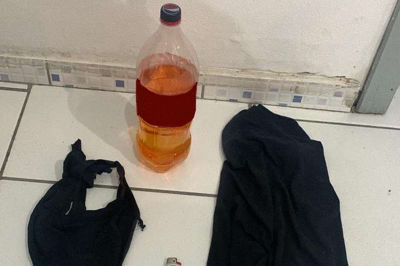 Durante a abordagem, os policiais apreenderam materiais que confirmaram a intenção criminosa: um litro de gasolina, duas balaclavas, um isqueiro e um aparelho celular.