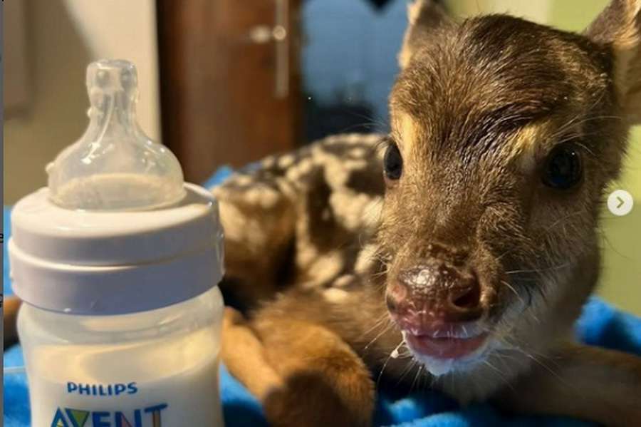 No local os policiais se depararam com uma mamãe cervo gravemente ferida, em trabalho de parto, onde prontamente os policiais realizaram o parto salvando a vida do filhote cervo da espécime Chital (Axis axis).