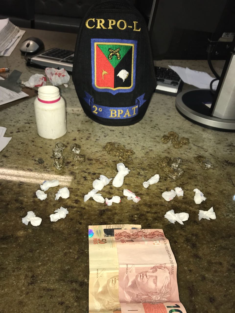 Um adolescente de 16 anos também foi apreendido, portando 15 buchas de cocaína. Ambos foram encaminhados à Delegacia de Polícia.