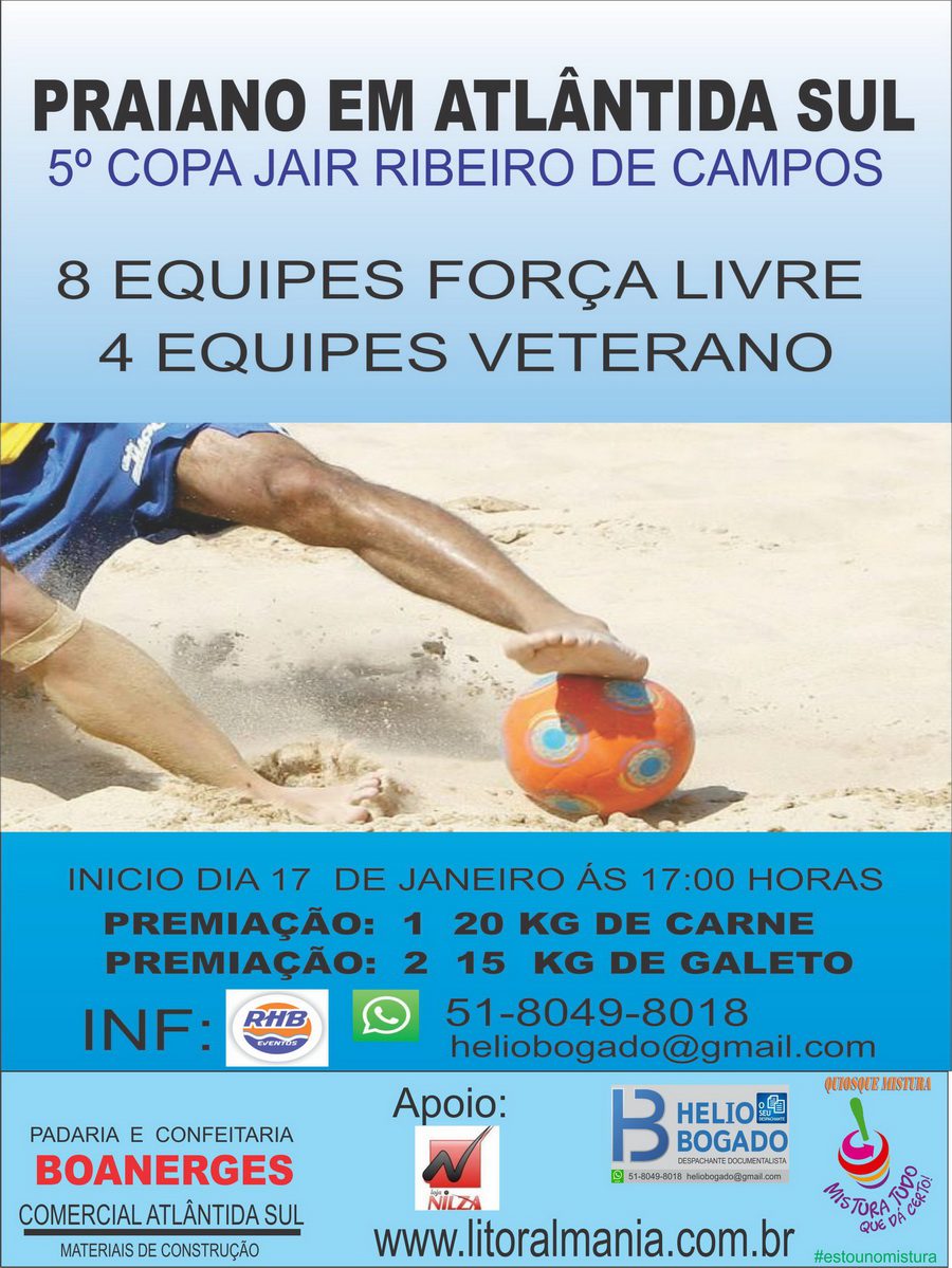 A 5° Copa Jair Ribeiro de Campos inicia neste domingo, em Atlântida Sul, a partir das 17h.