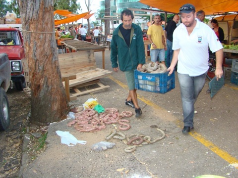 Foram apreendidos 40 kg de queijos, 40 kg de embutidos e 10 kg de galinhas. Os produtos estavam acondicionados de maneira inadequada, fora da temperatura regulamentar e sem inspeção sanitária. Os alimentos apreendidos foram destruídos e enterrados. Das bancas interditadas, três foram por problemas de ordem sanitária e uma por falta de alvará. Elas só poderão voltar a funcionar após regularizar a situação junto a Prefeitura.