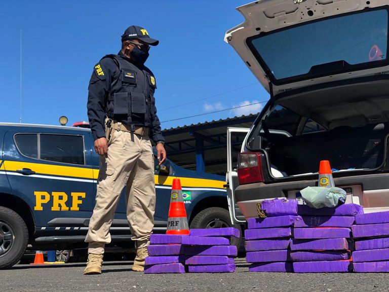 O condutor estava muito nervoso, e os PRFs sentiram um forte cheiro de maconha vindo de dentro do carro, instante em que fizeram uma vistoria no veículo e encontraram aproximadamente 30 quilos da droga no porta-malas.