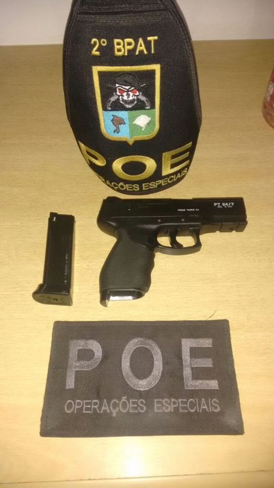 A Brigada Militar foi acionada e localizou com o suspeito uma pistola simulacro de airsoft.