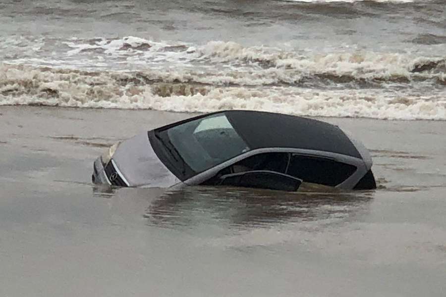 O veículo das vítimas apareceu atolado e parcialmente submerso na areia molhada na beira da praia, perto da guarita 74, no bairro Zona Nova, em Capão da Canoa, no dia 16 de outubro.