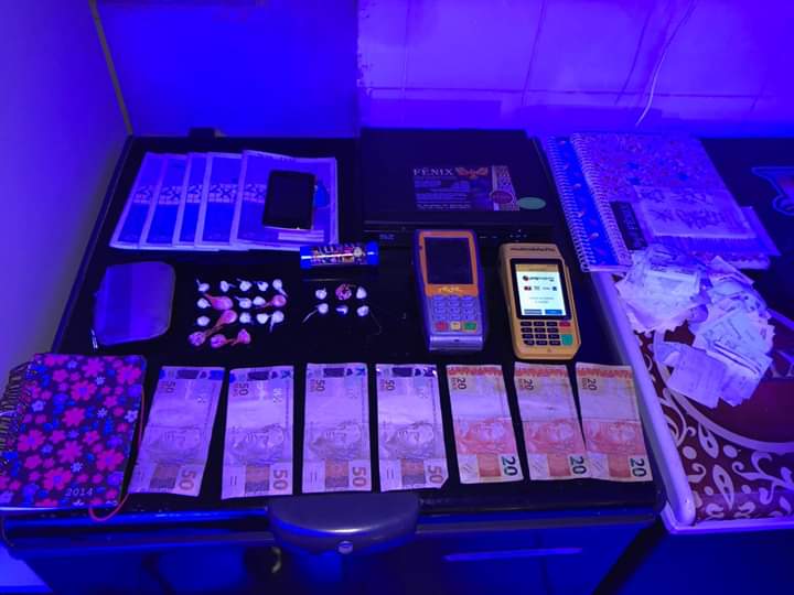 Na casa dos proprietários, foram apreendidas cocaína, apetrechos utilizados para embalar (sacos plásticos conhecidos como paraquedas) e pesar (balança de precisão) drogas, dinheiro trocado (em cédulas e moedas), documentos, um automóvel Ford/Fiesta, etc.