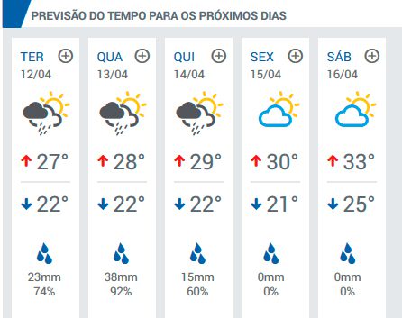 Não há previsão de frentes frias com ar polar intenso chegando ao RS nesta semana, por isso as temperaturas vão continuar elevadas, acima da média de abril.