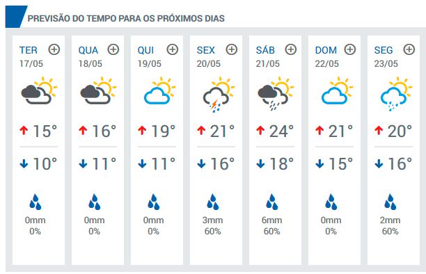 Nas áreas de interesse, a chuva não acumula mais do que 25 milímetros no norte da Fronteira Oeste, da Depressão Central e da faixa litorânea. Confira diariamente a previsão do tempo no site do Irga clicando aqui. (Fonte: Instituto Climatempo)