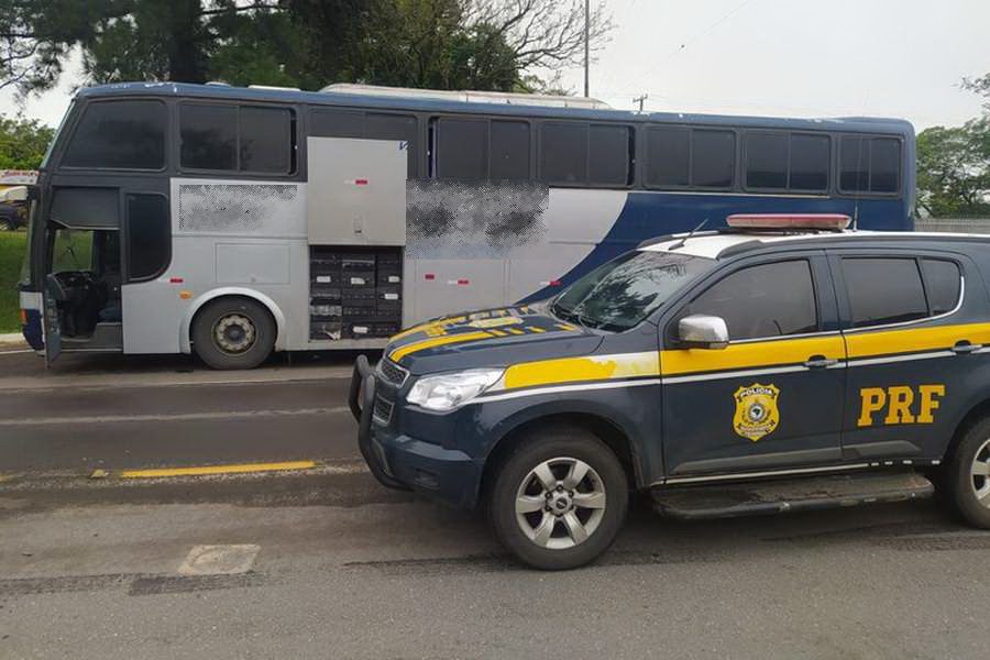 Em operação de combate ao crime, PRFs deram ordem de parada ao motorista de um ônibus com placas de Pinhais/PR.