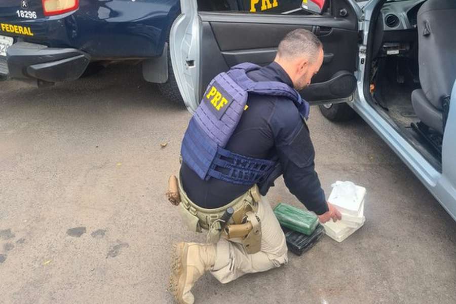Foi feita uma busca veicular minuciosa e foram encontrados diversos tabletes contendo pouco mais de 9 kg de cocaína escondidos em compartimentos ocultos no carro, o que representa um prejuízo estimado em R$ 1.620.000,00 aos traficantes.