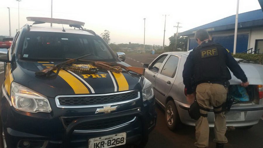 A prisão ocorreu durante comando de combate a criminalidade realizado em frente a unidade operacional da PRF. Os dois homens, um de 49 anos e outro de 24 anos, moradores de São João do Sul-SC, entravam no estado do RS num automóvel Fiat/Palio e portavam duas espingardas cal.12 ocultas dentro do veículo assim como 37 cartuchos intactos.