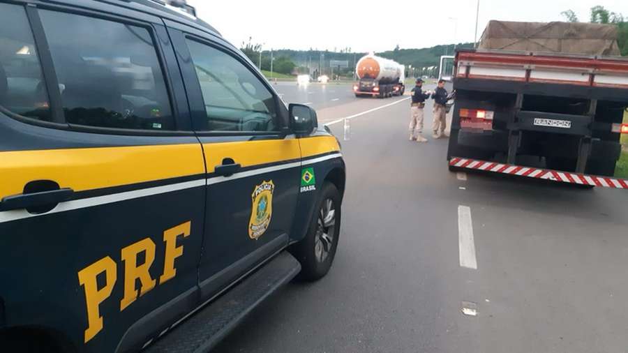 Os policiais abordaram o motorista de um caminhão M. Benz/L 1620 carregado com papel couchê, que viajava de Curitiba-PR para Serafina Corrêa-RS.
