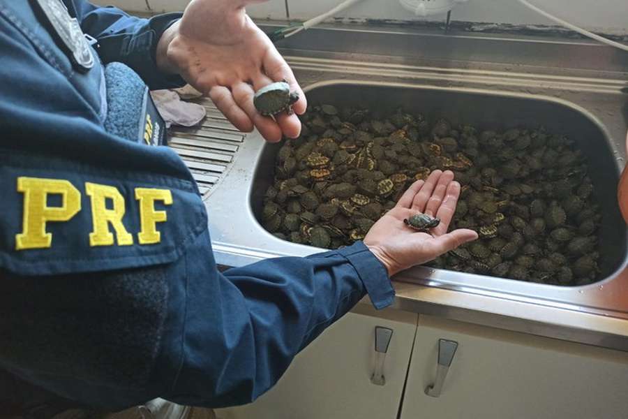 Mais de mil filhotes de tartaruga da espécie tigre d´água foram resgatados pela Polícia Rodoviária Federal durante uma ação de fiscalização na BR-101.