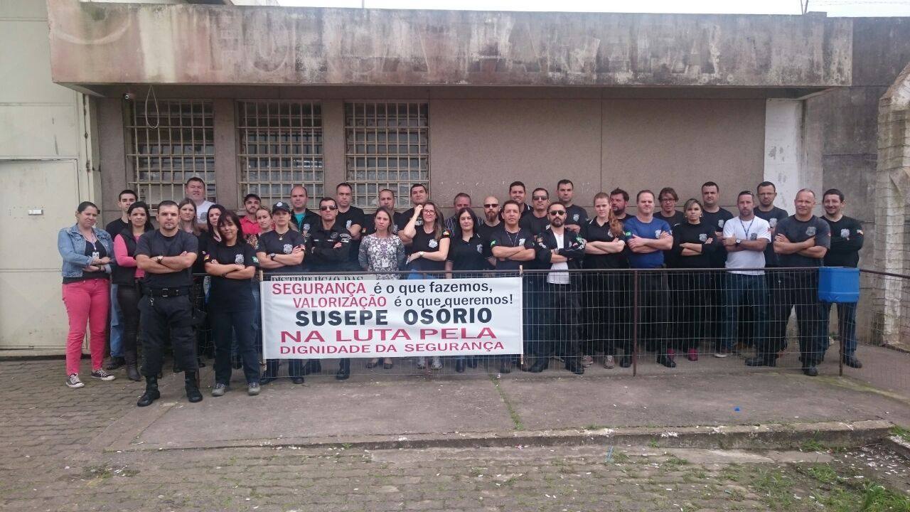 Agentes Penitenciários da SUSEPE, na Penitenciaria Modulada Estadual de Osório, cruzaram os braços nesta segunda.
