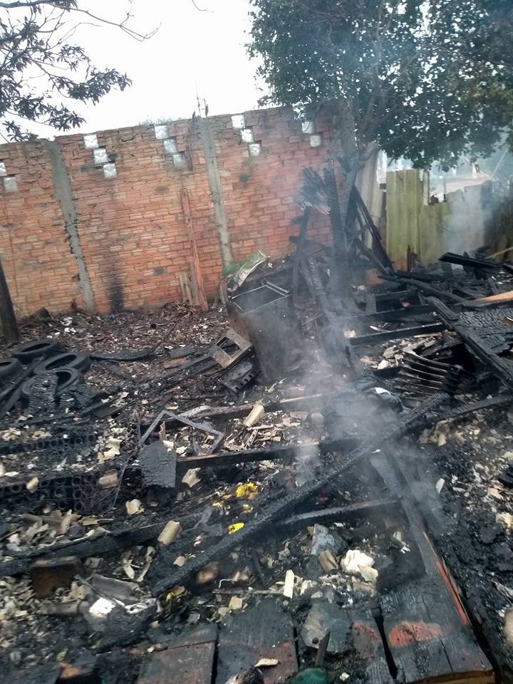 Uma residência foi completamente destruída pelo fogo, na tarde desse sábado (23), na Rua Mariápolis, no bairro Medianeira, em Osório.