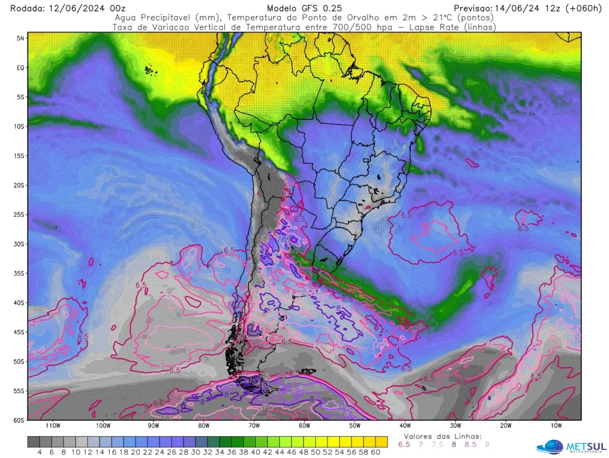 Um “rio atmosférico” se formará a Leste dos Andes e trará grande volume de umidade para o Rio Grande do Sul a partir do sábado (15 de junho), segundo a MetSul Meteorologia.