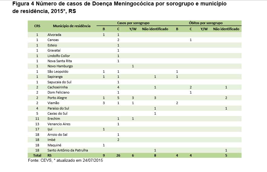 É maior o número de casos de Meningite registrados no Rio Grande do Sul em 2015, em relação ao ano passado.