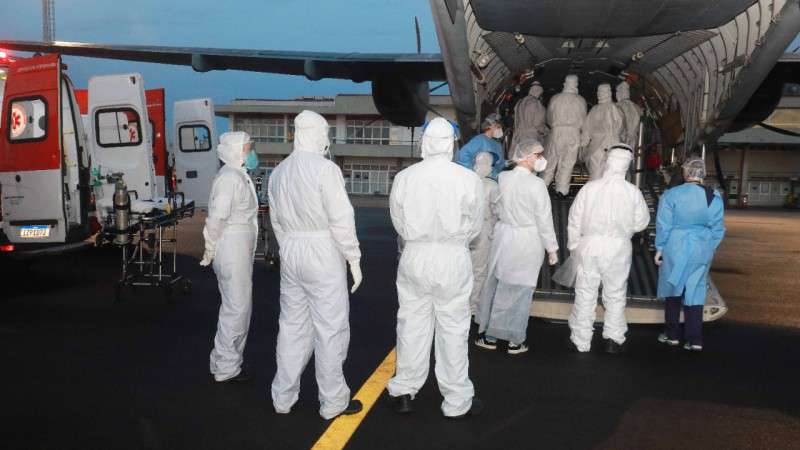 Outros nove pacientes Covid vindos de Porto Velho, capital de Rondônia, em avião da Força Aérea Brasileira (FAB), desembarcaram no aeroporto de Porto Alegre por volta das 5h30 desta sexta-feira (29/1).