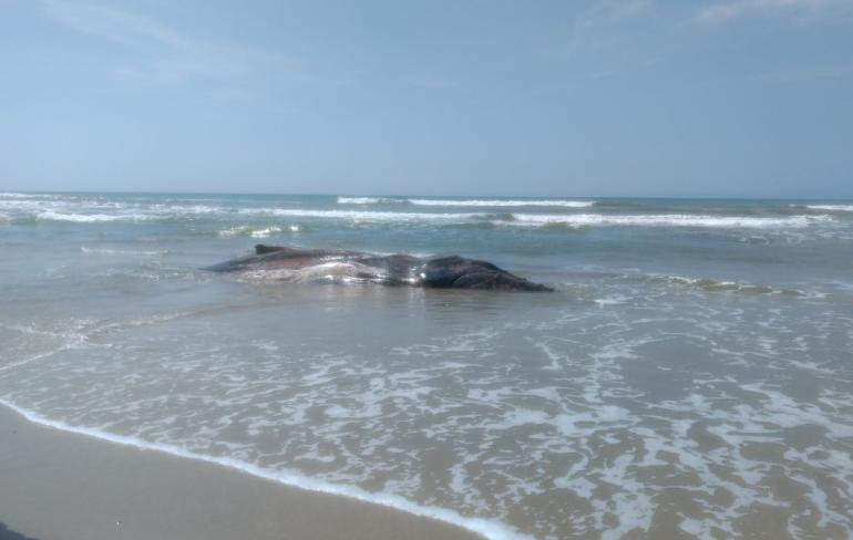 Uma baleia foi encontrada morta na beira-mar de Xangri-Lá, na manhã desta quarta-feira (28).