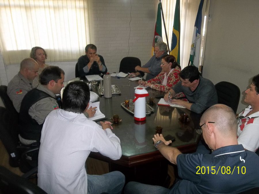 O encontro na tarde desta segunda-feira (10), no Centro Administrativo, foi conduzido pelo prefeito Luciano Pinto e tinha como integrantes parte do secretariado municipal, os comandantes da Brigada Militar de Torres, Capitão Fábio Hax, e do pelotão de Arroio do Sal, tenente Gerson Sadovik, e também dos vereadores, Edimilson Guti, José Deoclides Nunes da Silveira e Vera Rejane Braga.