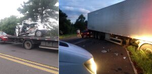 Colisão envolve carros e carreta na Estrada do Mar