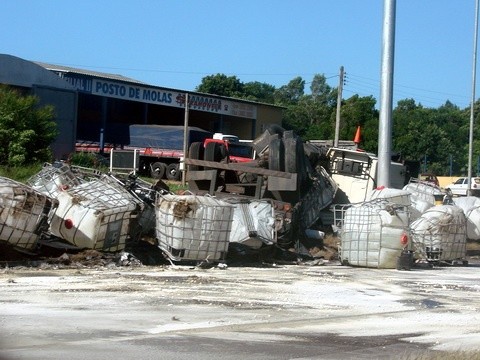 Devido ao acidente, a rodovia teve que ser bloqueada. O caminhão transportava 21 contêineres com o produto tóxico. Cerca de dez mil litros teriam vazado sobre a pista e as laterais.