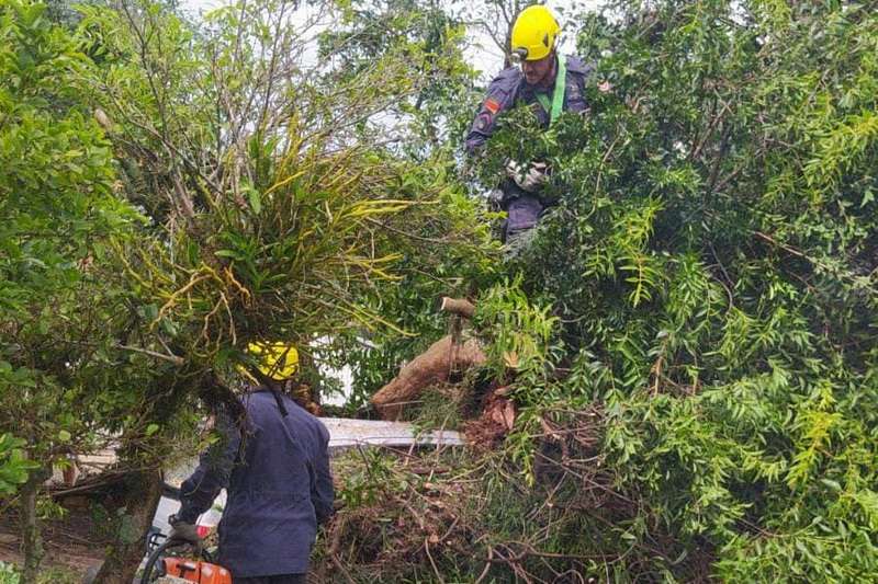 O Corpo de Bombeiros foi acionado rapidamente para cortar e remover os galhos que comprometeram parte da casa e danificaram o carro estacionado.