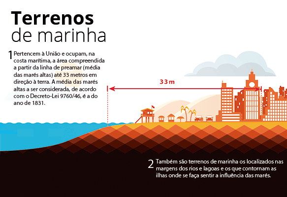 Os Terrenos de Marinha como conhecemos hoje foram instituídos em 1818, em plena monarquia, a fim de garantir a segurança do rei João VI e da família real que residia no país, após fugir de Portugal.