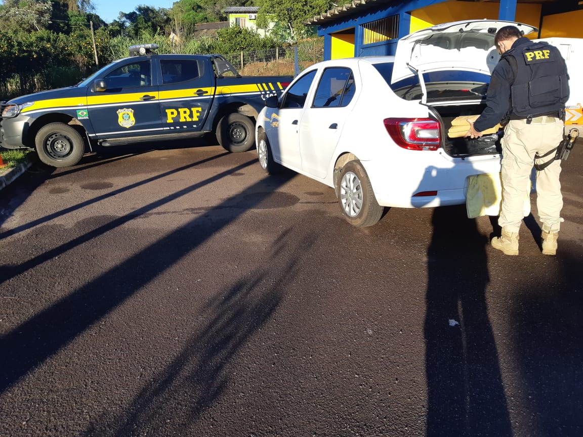 Os policiais realizaram a abordagem 4 quilômetros após e, durante a vistoria, localizaram 76 quilos de maconha no bagageiro.
