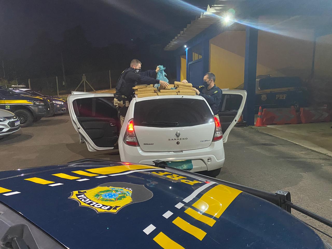 Na noite desta terça-feira (16), na BR 101, em Osório, a Polícia Rodoviária Federal prendeu um criminoso transportando 37,96 quilos de maconha em um Sandero.