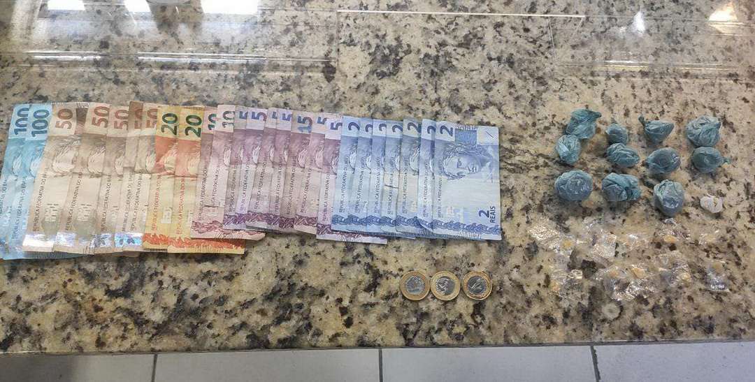Com o abordado foram encontradas 11 porções de crack, 11 porções de maconha, um telefone celular e R$ 562,00.
