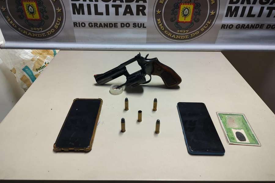 O indivíduo foi encontrado próximo ao local, abordado e em sua cintura foi localizado um revólver calibre .38, cinco munições e dois celulares.