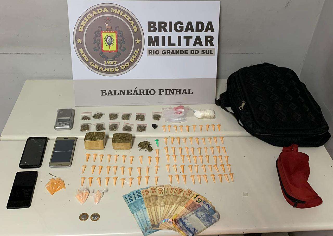 Na noite de quinta-feira (01/7), uma equipe da Força Tática da 3ª Cia/8? BPM, com o apoio de uma guarnição do policiamento ostensivo, prendeu dois homens e apreendeu um adolescente por tráfico e associação ao tráfico, em Balneário Pinhal.