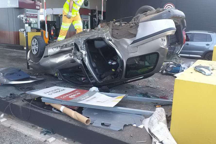 Um veículo capotou na praça de pedágio de Santo Antônio da Patrulha.