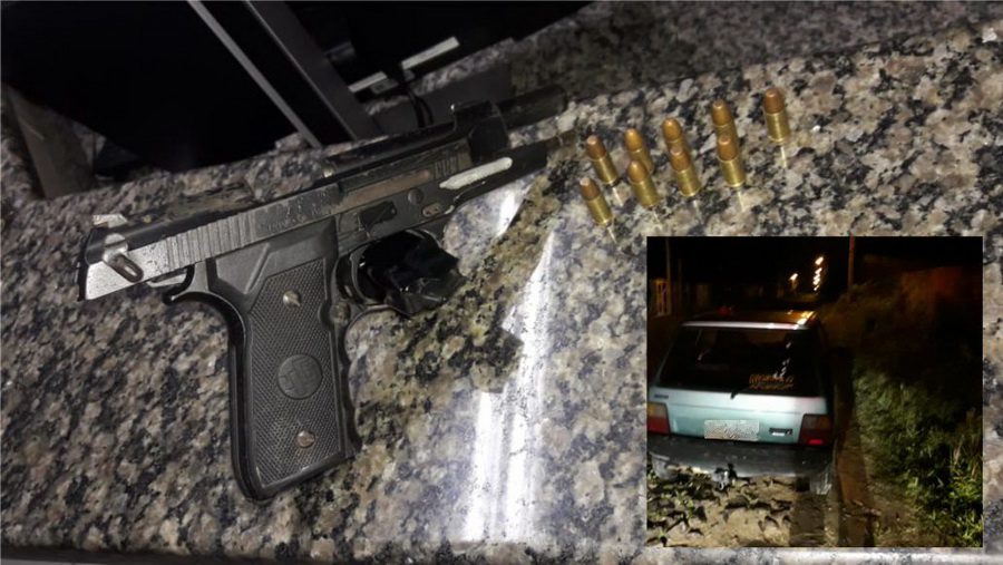 Com eles foi localizada uma pistola preta 9mm com 09 munições, utilizada para assaltar uma mulher na Avenida Emancipação, no centro da cidade, sendo levados cartões de crédito e a bolsa.