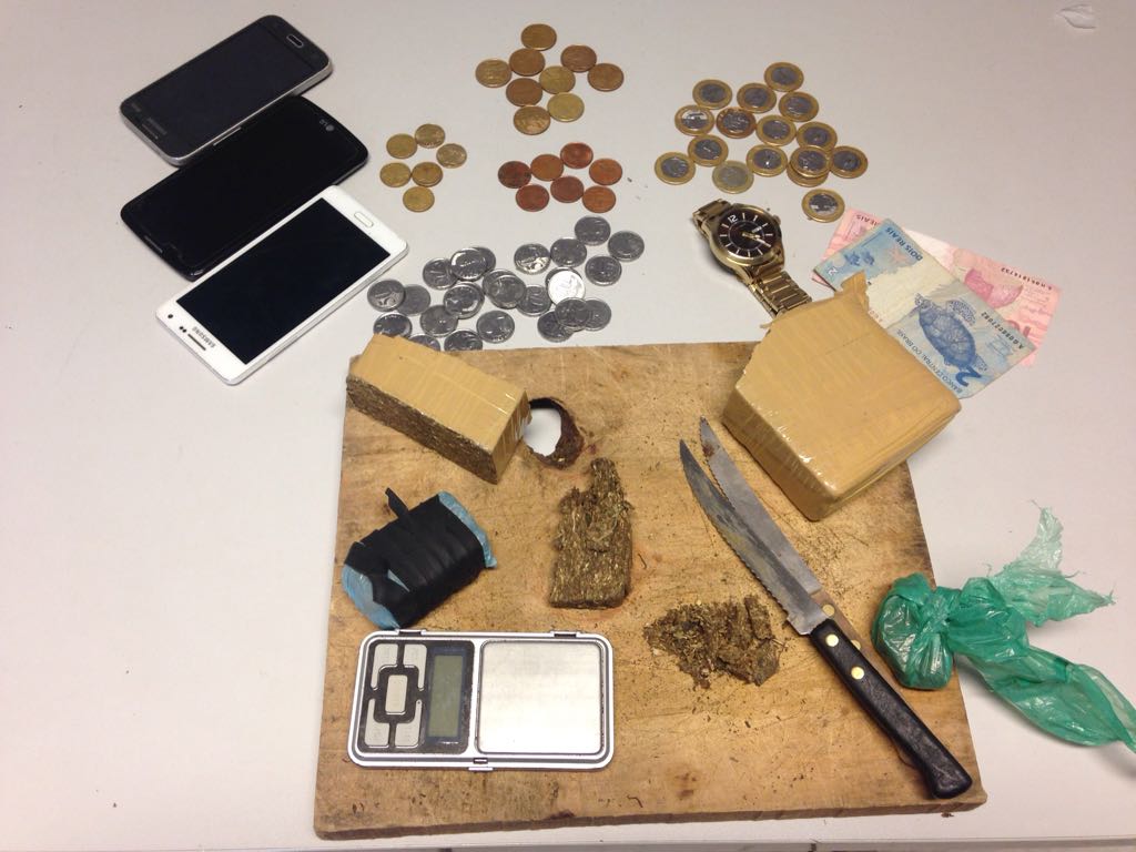 Um dos suspeitos ainda chegou a tentar fugir da Brigada Militar, saindo da casa segurando uma porção de maconha, mas foi detido.