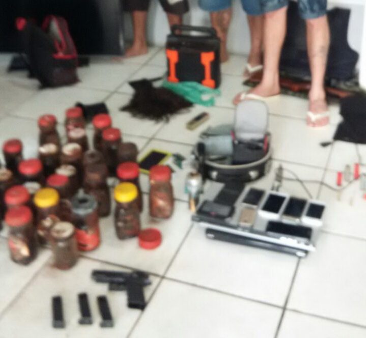 Dentro do automóvel foram encontrados armamento de uso restrito, munições e miguelitos (espécie de cruz formada por pregos entrelaçados para furar pneus de carros). A suspeita é de que eles se preparavam para realizar algum assalto na região.