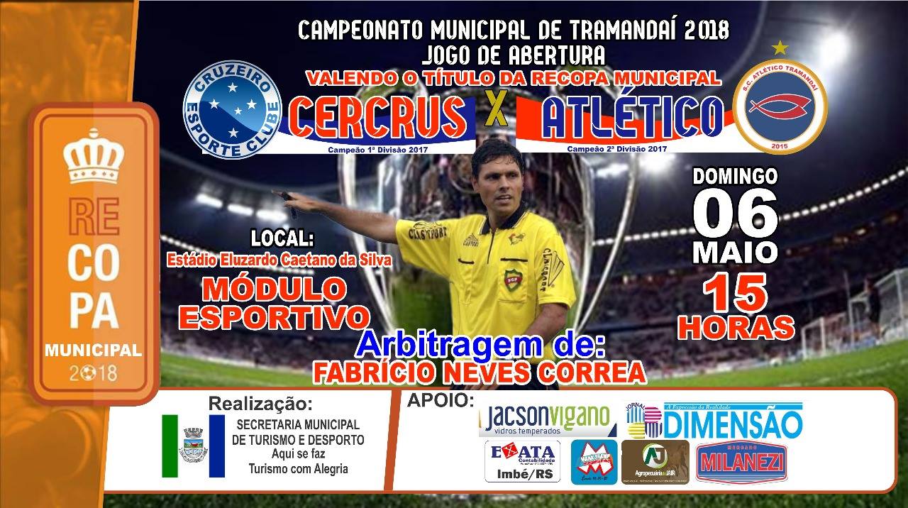 No domingo (06), acontecerá a abertura oficial às 15h com o jogo entre Cercruz X S.C. Atlético Tramandaí, valendo o título da recopa municipal.