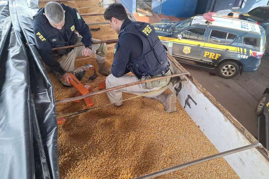 No entanto, os policiais decidiram verificar a carga e, ao tirar a lona da carreta e remexer nos grãos, encontraram centenas de fardos de droga no meio do milho.