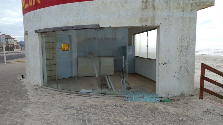 Vândalos quebraram na madrugada desta segunda-feira (10) parte dos vidros da Guarita Central, na Avenida Beira Mar.