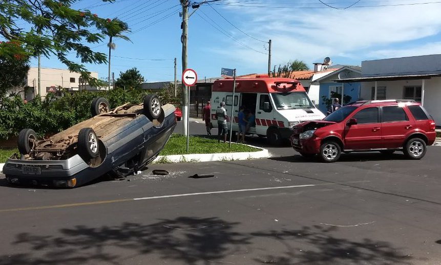 Um acidente de trânsito envolveu dois veículos na tarde desta segunda-feira (05), em Osório. Com o impacto, um dos automóveis chegou a capotar.