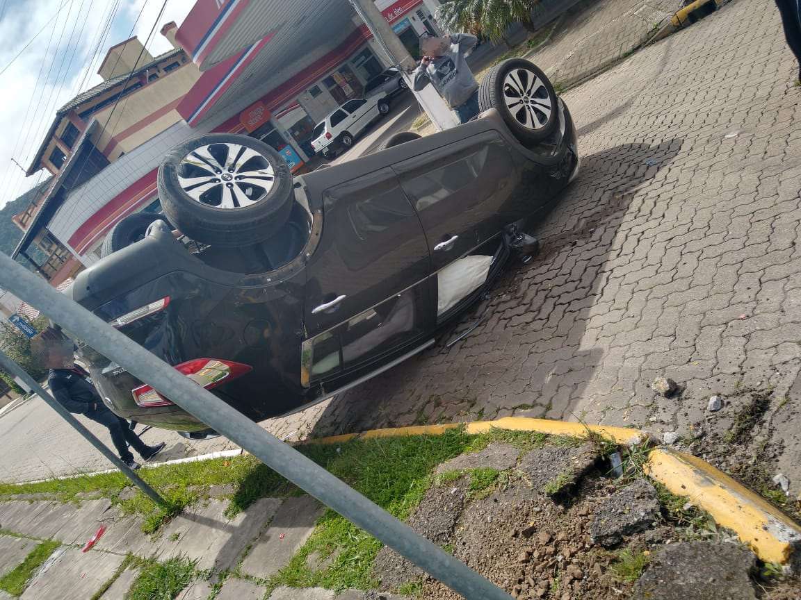 Um veículo capotou após uma colisão entre dois carros, no início da tarde deste sábado (21), em Osório.