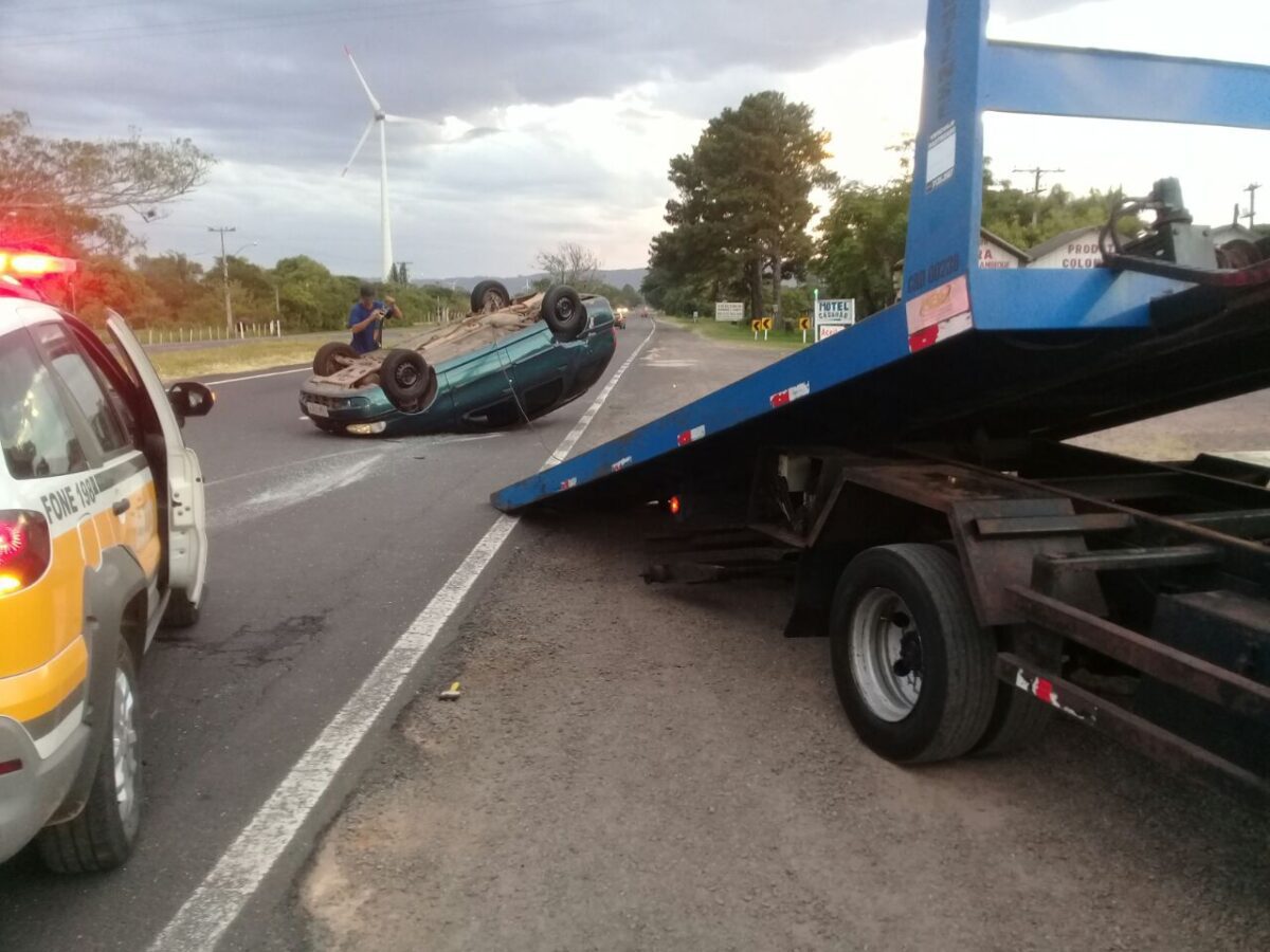 Veículo capota após colisão na ERS-030 em Osório