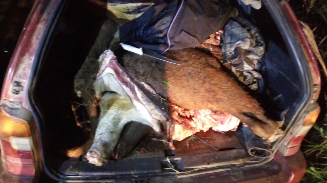 Inicialmente a Brigada Militar tentou abordar o automóvel que fugiu em alta velocidade. O carro foi encontrado abandonado com dois bois carneados em seu interior.
